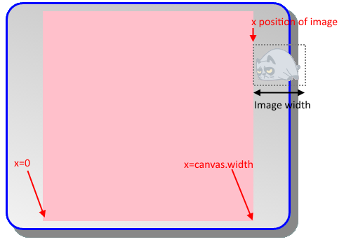 But the code is doing exactly as we asked, which is that the "x" of the image should not go past the "x" of the canvas.